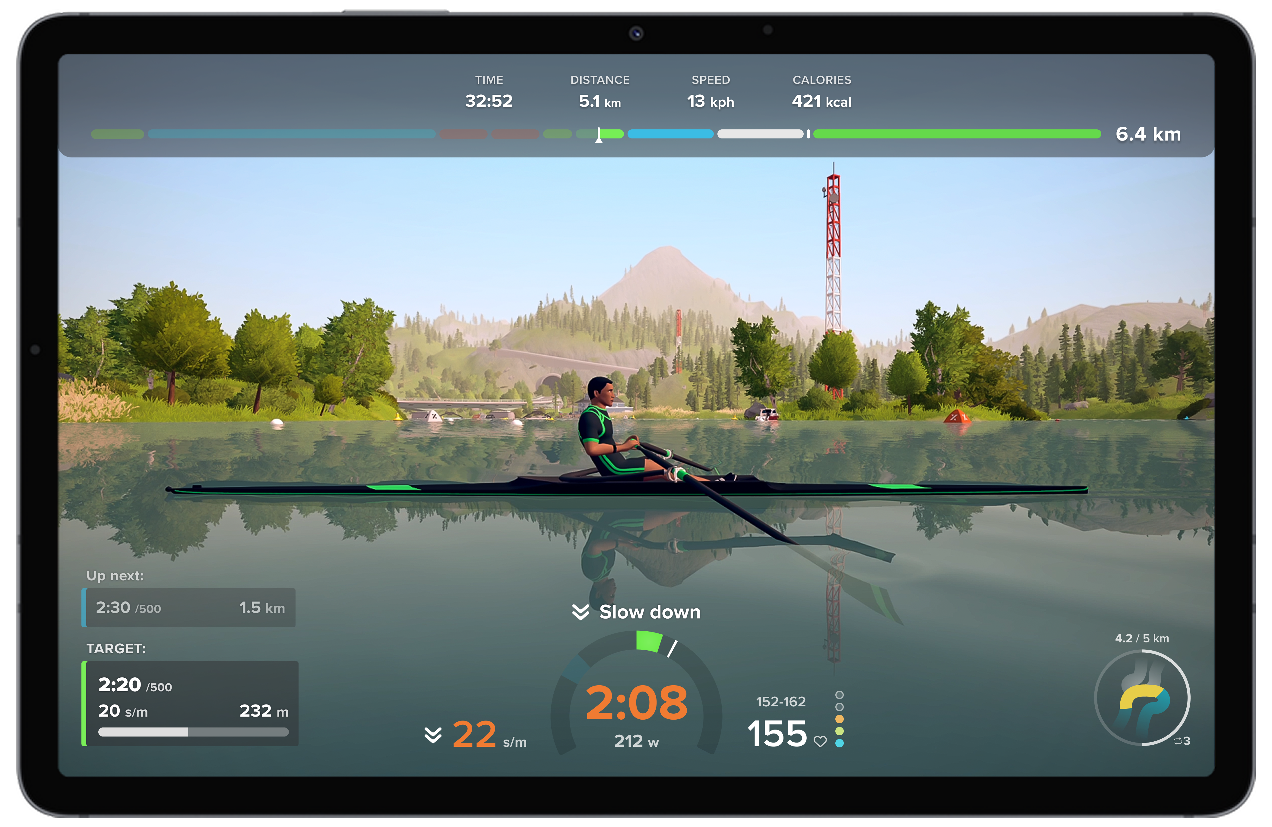 EXR brings the indoor rowing community together in virtual worlds like Henley-on-Thames or Boston’s Charles River. Besides Just Row and Training Mode, the app offers a wide range of motivational features that help you get fit on the RowErg. The more you row, the higher your level, the better your streak, and the more X-Coins you earn to unlock gear for your avatar. All while sharing the virtual waters with rowers from all over the world.