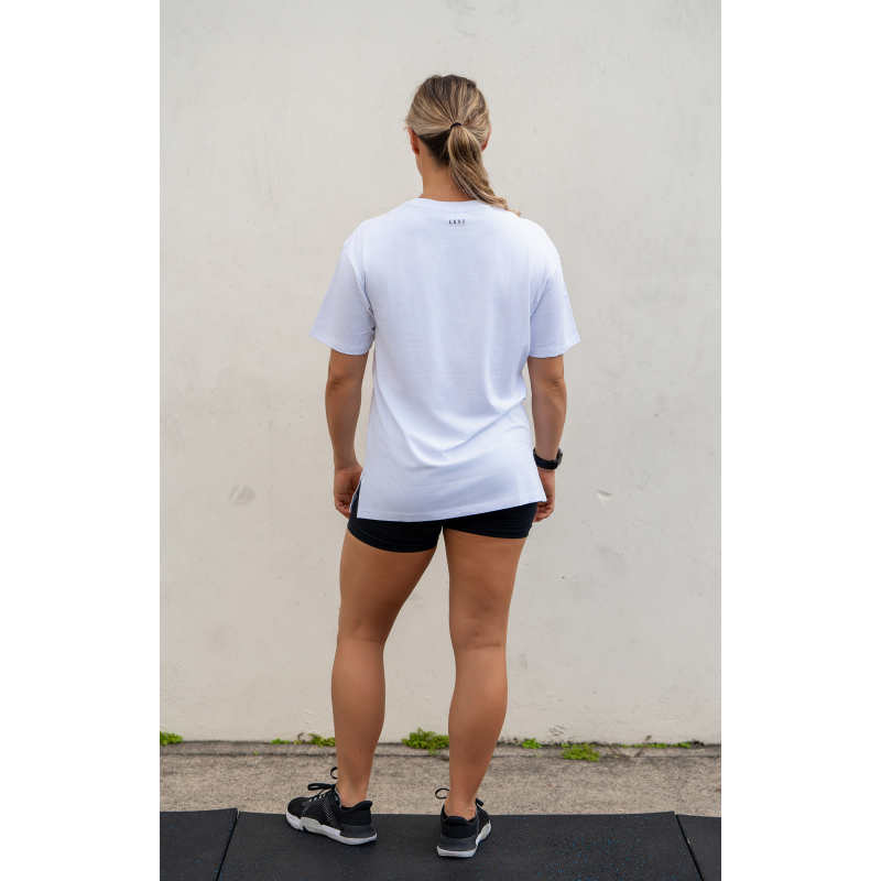 Introducing the Concept2 x LSKD ultra premium white oversized T-shirt, a perfect blend of comfort and style. Crafted from ultra soft cotton with 5% spandex for added mobility when you need it, making it the perfect shirt for both fitness and casual wear.